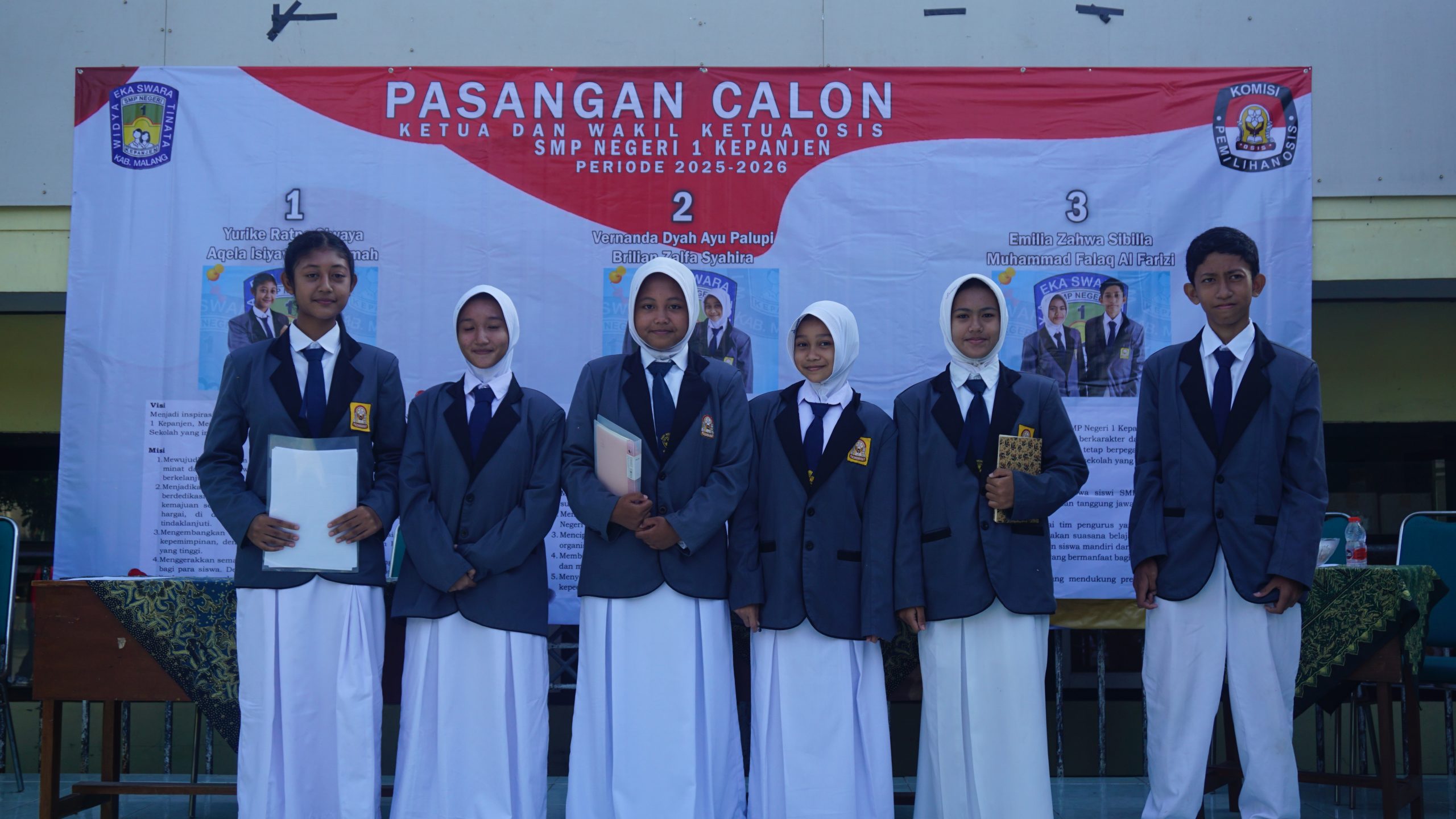 Terdapat tiga pasangan calon yang bersaing secara sehat dengan menyampaikan visi dan misi di hadapan seluruh warga sekolah.